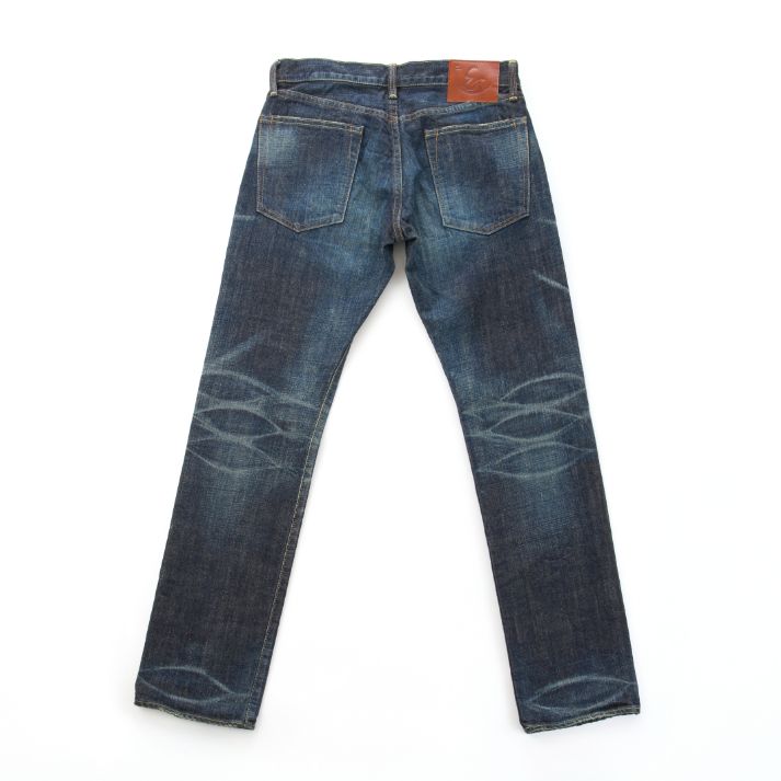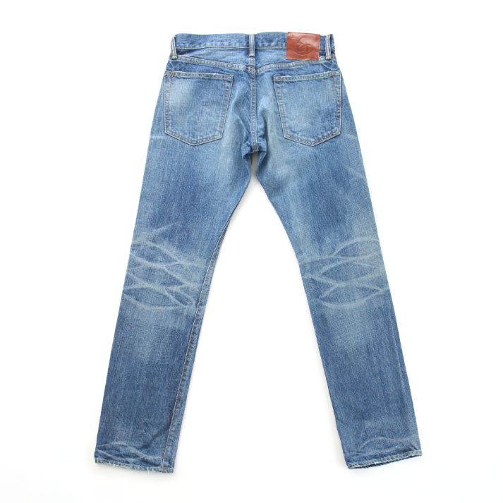 深いインディゴの色合いを残しつつ、ハンドシェービングで絶妙な濃淡とアタリ感をプラス。穿き込んだようなリアルな表情でありながら、上品さを失わない、落ち着いた大人の風合いが魅力です。